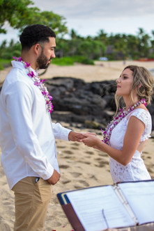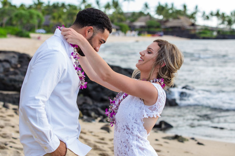 This couple decided have a more typical wedding ceremony, including a Hawaiian lei exchange, sharing intimate vows, personal words, and exchanging rings.