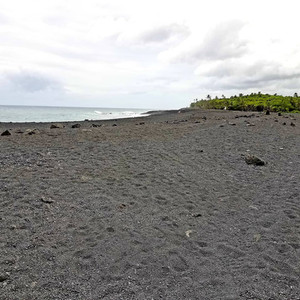 Pohoiki Black Sand Beach formed during the most previous lava flow. Lava was dropping rapidly into the ocean, smacking against the sea, and solidifying into rocks and fragments - creating this incredible beach. This area which can be seen here used to be ocean and is now a course black sand and black pebble beach.