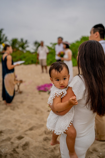 Sunny and Tian celebrated their 35 year vow renewal with their family and Kona Wedding Officiant® this past December. Their wedding renewal ceremony took place at Kuki`o Beach in North Kona on Hawaii Big Island. One of the most special parts of their ceremony was that the holiday lights were still in the trees, so our photographer, Brittany, was able to get a few photographs after sunset of this delightful family under the bright lights of the Four Seasons. Sunny and Tian chose our Simple Family Photo Package with all inclusive photography for 1.5 hours, but added on lots of personalized Ala-Carte additions to make their wedding package their own. They included 1 Hour of Ukulele, a Bridal Bouquet, and a Haku Flower Crown. Sunny, Tian, and their family even brought along some battery operated tea lights to create a lighted aisle for the couple to walk down, which really added some charm to the ceremony. Sunny and Tian personalized their wedding ceremony with a short opening reading and by having their children read personal words. It was a beautiful element to include in the ceremony and created a very intimate experience for the wedding renewal. Many blessings to Sunny and Tian and their 35 years of marriage. Here at Kona Wedding Officiant®, we wish you a lifetime of happiness!
