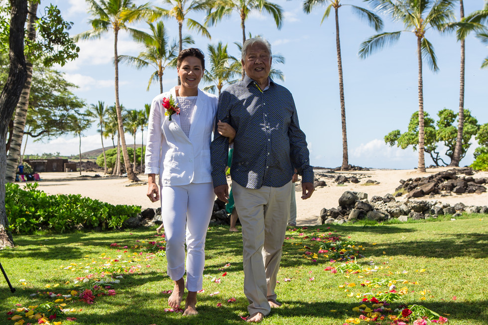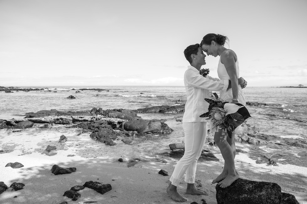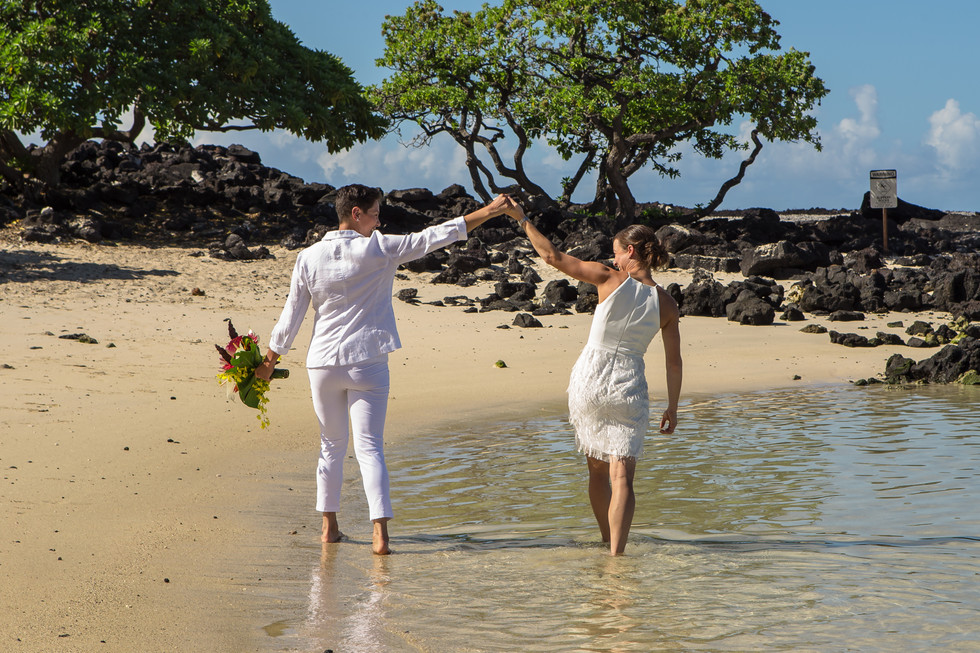 Maggie and Jessica had a lovely and intimate family beach wedding. The couple was married on an early fall morning this past October at Kikaua Point Park. Maggie and Jessica were so lucky to have their family and friends fly over to the Big Island of Hawaii to celebrate their marriage with them here on our beautiful Kikaua Point Beach. This couple had almost twenty guests at their wedding, which is the maximum allowed at Kikaua Point (vendors included).