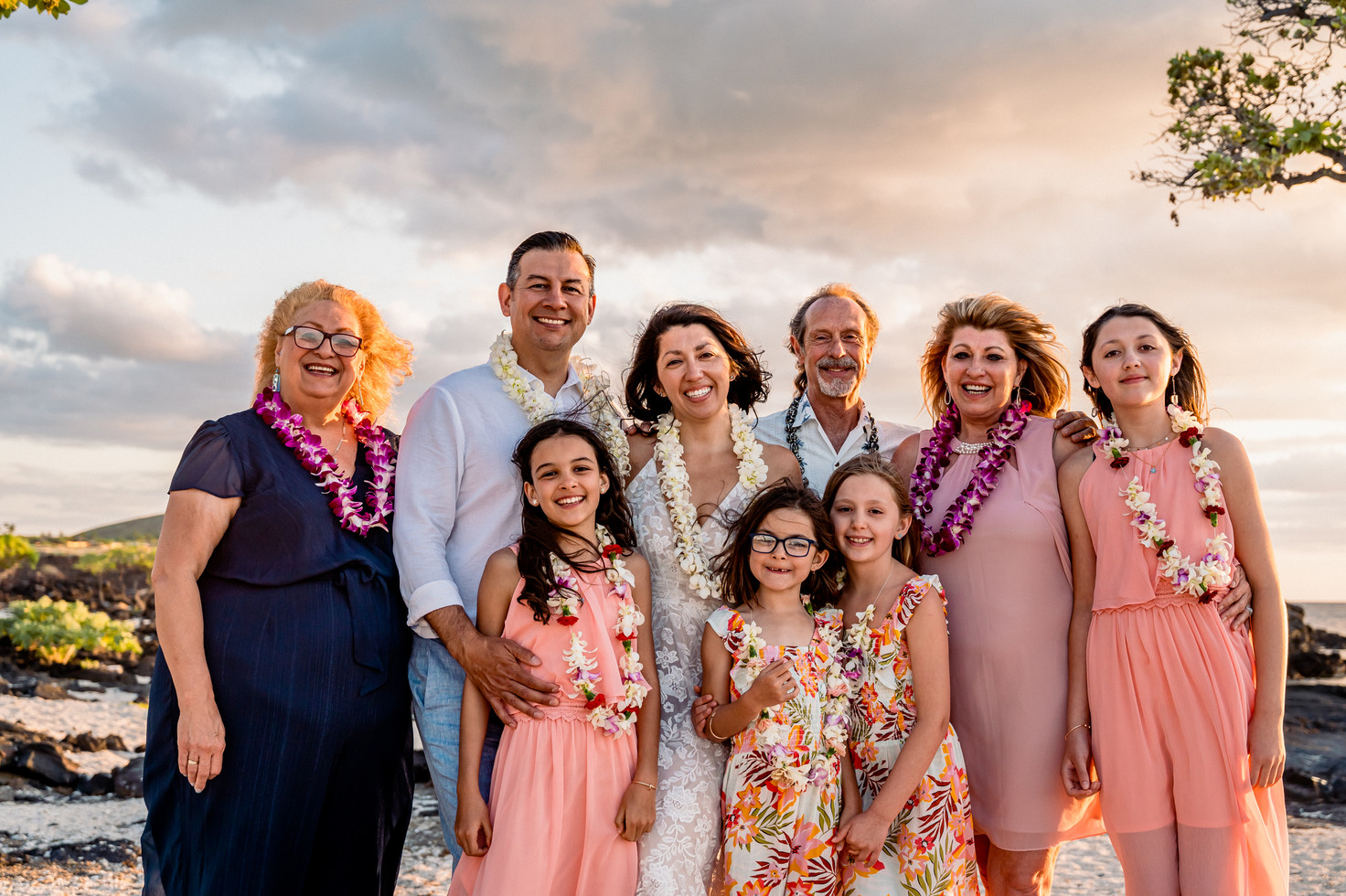 Mandilee + Victor had a small family wedding at the beautiful Kikaua Point Park in North Kona, Hawaii. This couple had some hiccups from Covid, like many other couples, but after some patience, finally made their special day possible here on the beautiful Big Island of Hawaii. See some of their lovely beach wedding photographs below from their Simple Family Photo Package.